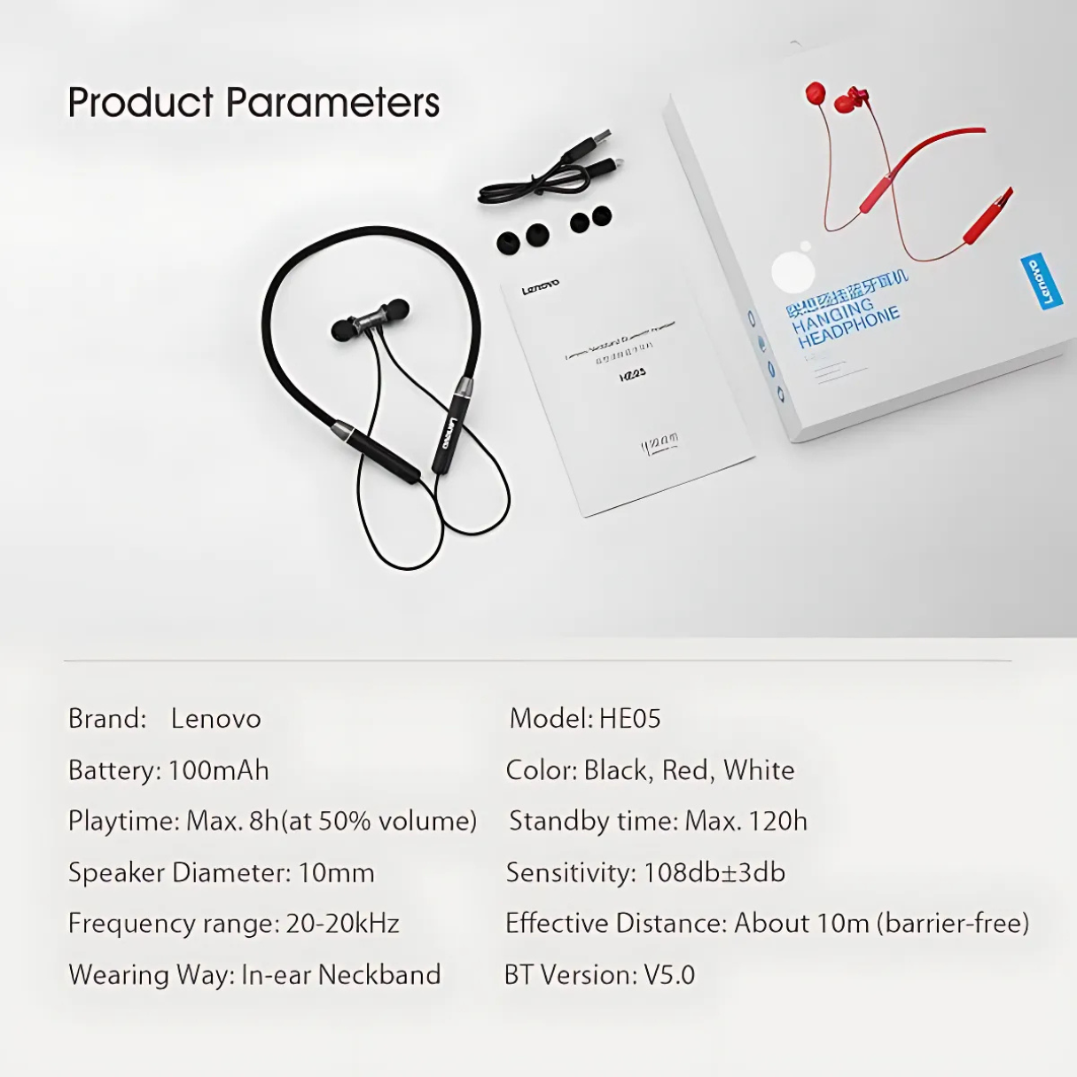 1 × Lenovo HE05 Neckband Earbuds